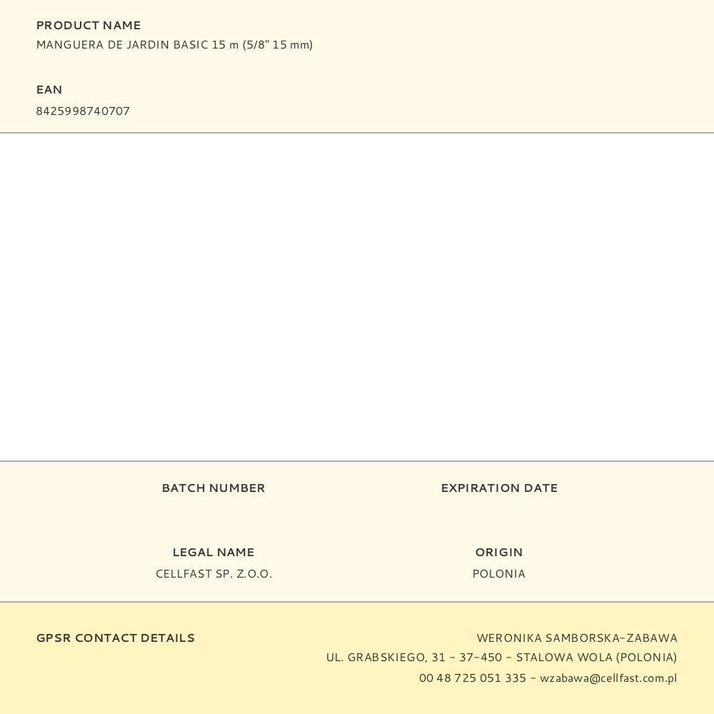 Manguera De Jardín Basic Ø15 Mm, 5/8 Pulg, 15 M