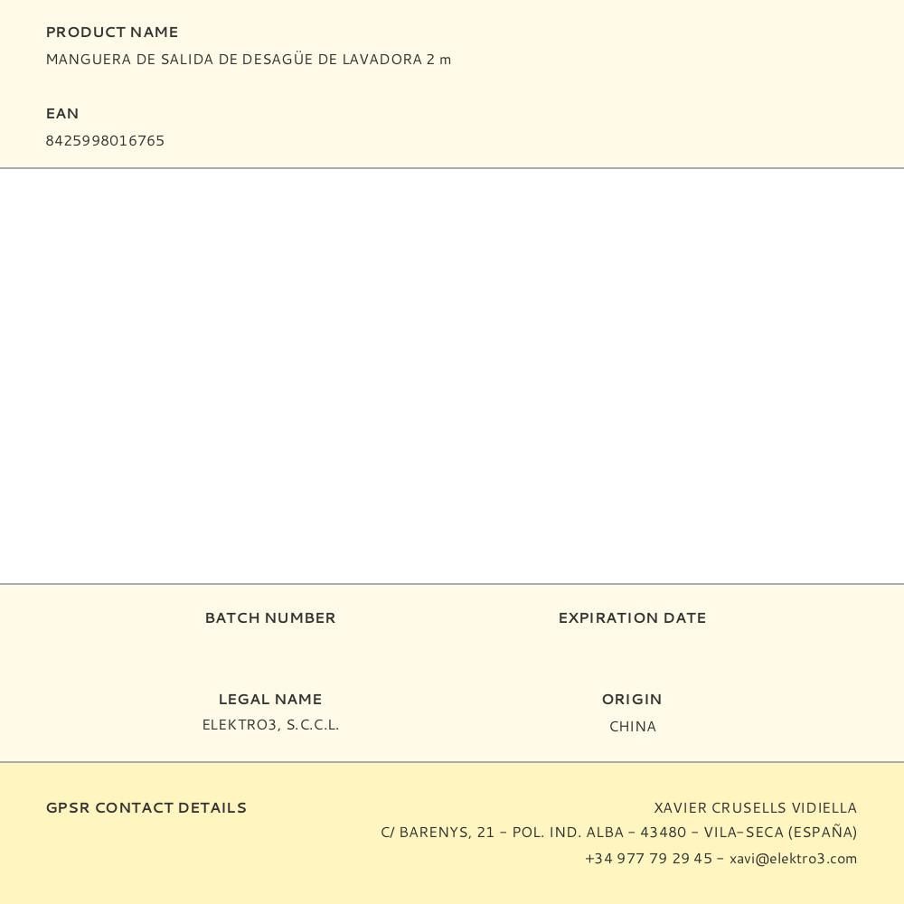 Manguera De Salida De Desagüe De Lavadora 2,0 M