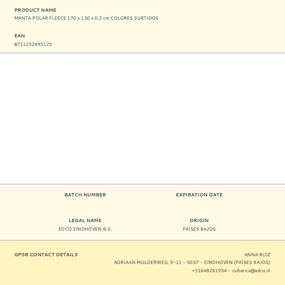 Manta Polar Fleece Colores Surtidos 130 X 170 Cm