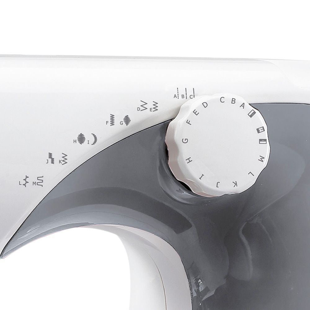 Máquina De Coser Portátil De 13 Diseños De Puntada. Función De Doble Aguja. Con 8 Accesorios Incluidos: Canilla, Abridor De Ojales, Discos De Fieltro, Prensatelas De Ojales, Agujas, Doble Aguja, Eje De Carrete Y Destornillador. Ojal En 4 Tiempos. Sistema De Canilla Oscilante. Doble Altura Del Prensatelas. Embrague Automático Para Hacer Las Canillas. Con 2 Porta Carretes. Brazo Libre. Permite Hacer Pespunte Y Zig Zag. Con Remate De Puntada. Pedal Electrónico Para Control De Velocidad. Motor Incorporado 70 W. Luz Integrada 15 W. Incluye Asa De Transporte, Juego Completo De Accesorios Y Bolsa Para Almacenar