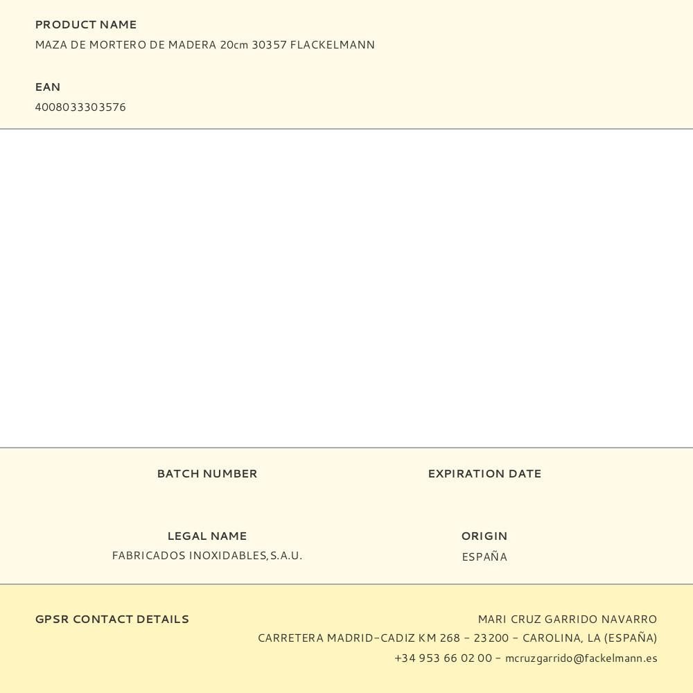 Maza De Mortero De Madera Ø40 X 190 Mm