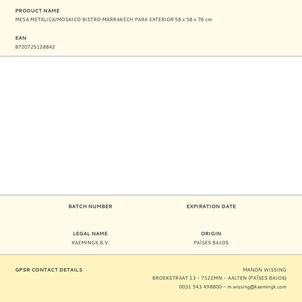 Mesa Metálica/Mosaico Plegable Bistro Marrakech Para Exterior 58 X 58 X 76 Cm