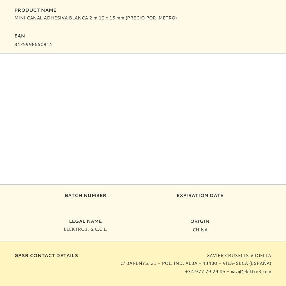 Mini Canal Adhesiva Blanca 2 M 10 X 15 Mm (Precio Por Metro)