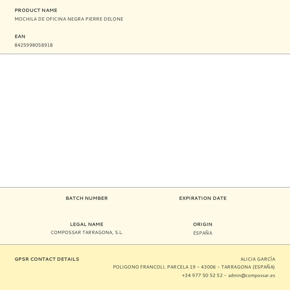 Mochila De Oficina Negra Pierre Delone. Medidas: 32X42X12Cm (Alto/Ancho/Profundo). 100% Poliéster. Interior Acolchado Para Portatil. Portabotellas. Conexión Usb Para Power Bank (No Incluida). Sujeción Elástica Para Llevar En Un Trolley. Tirantes Acolchados.