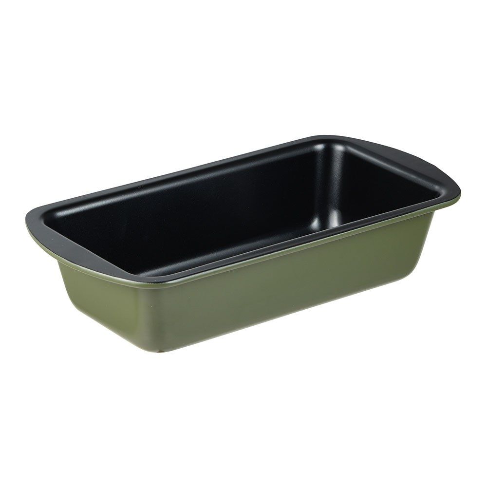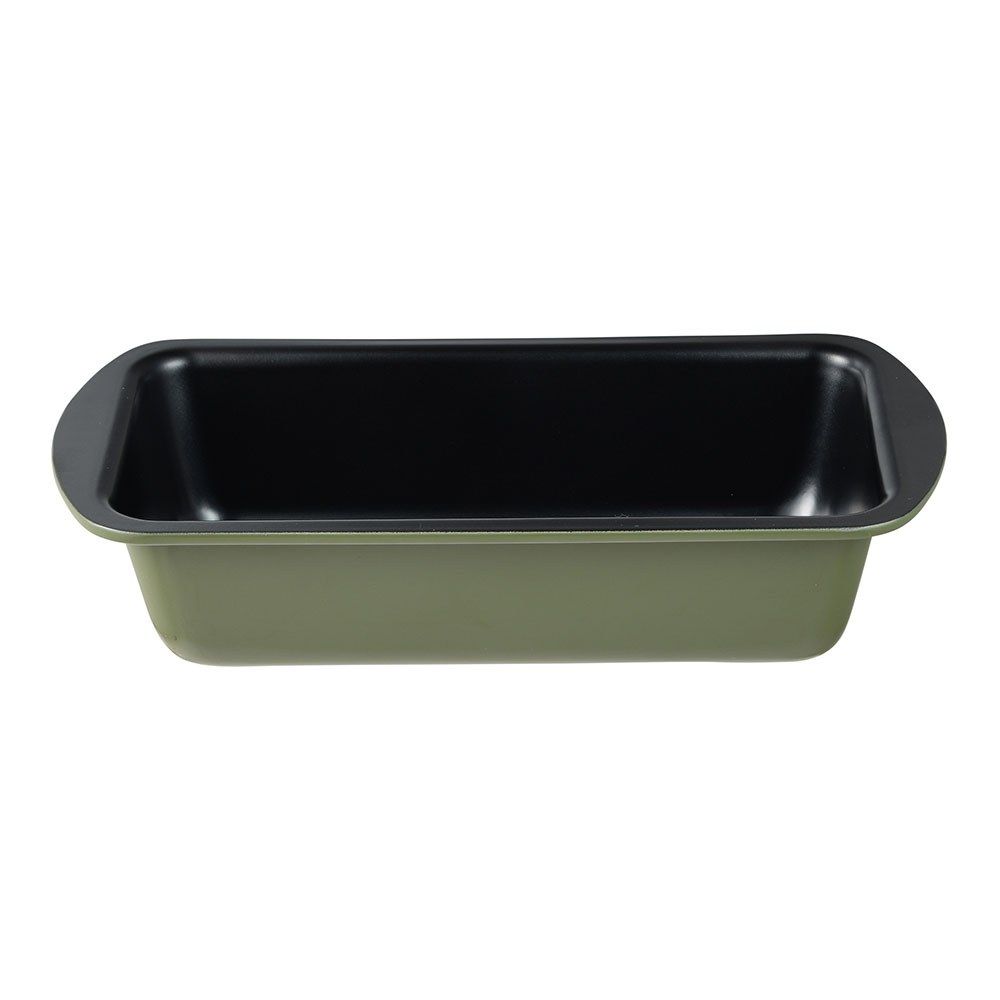 Molde Rectangular, Serie Experto, De Acero Al Carbono, Para Horno, Revestimiento Interior Antiadherente Negro. Revestimiento Exterior En Pq-7764C. Color Verde Oliva. 25,5 X 13,3 X 5,7 Cm