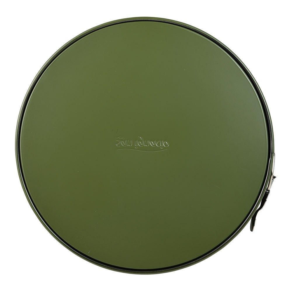 Molde Redondo Desmontable, Serie Experto, De Acero Al Carbono, Para Horno. Revestimiento Interior Antiadherente Negro, Revestimiento Exterior En Pq-7764C. Color Verde Oliva, Ø26 X 6,8 Cm