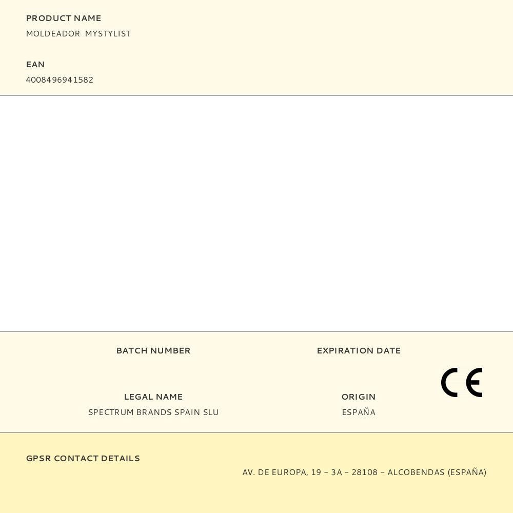 Moldeador Mystylist Con Barril De Ø19 Mm Para Rizos Compactos Y Definidos. Revestimiento De Cerámica Para Una Distribución Uniforme Del Calor Por Todo El Barril. Lista Para Usar En 90 Segundos. Ajuste De Temperatura 190 °C. Interruptor De Encendido/Apagado Con Indicador Led. Punta Fría De Seguridad. Soporte De Apoyo Resistente Al Calor. Cable Giratorio De 1,8 M. Apagado Automático De Seguridad Después De 60 Minutos
