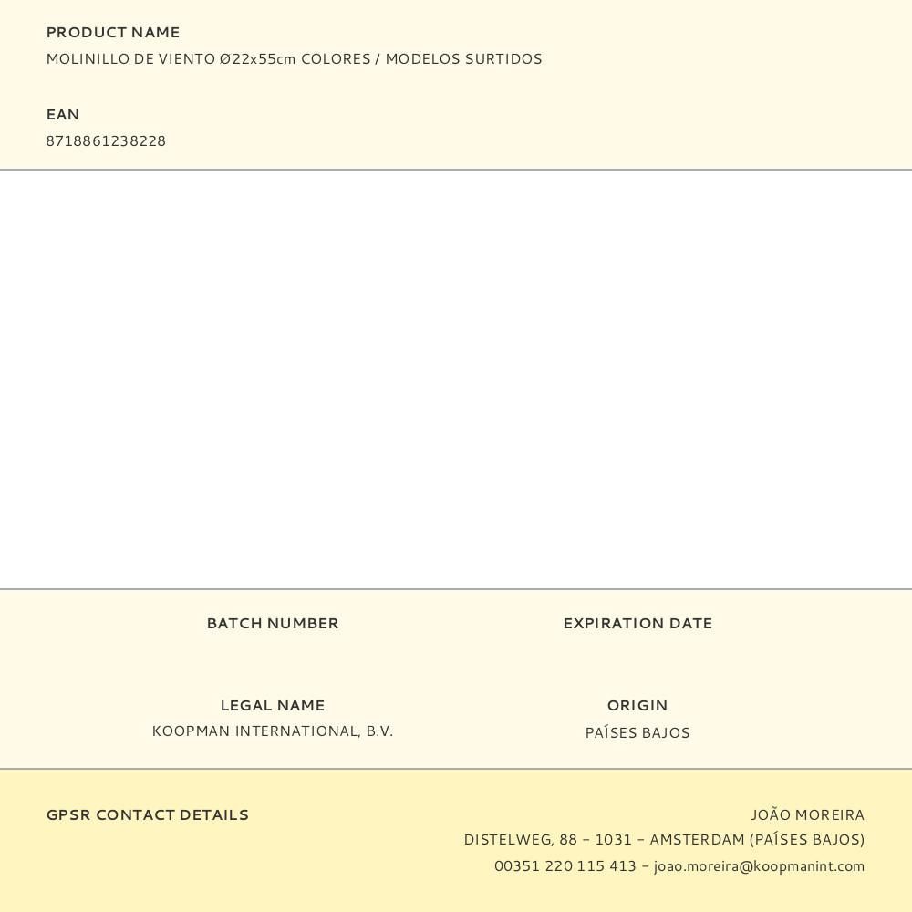 Molinillo De Viento. Medidas: Ø22X55Cm Colores / Modelos Surtidos