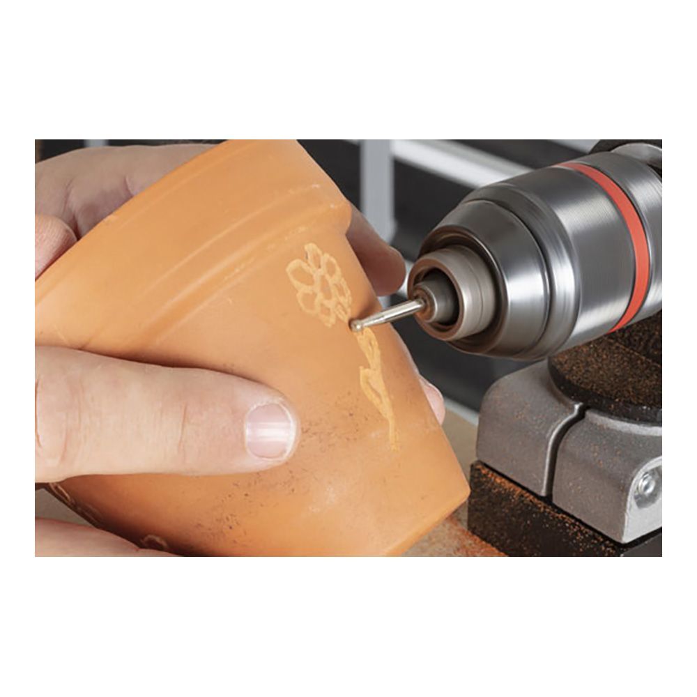 Set 3 Muelas De Diamante Esféricas Y Cónicas. Las Minimuelas De Diamante Esféricas Y Cónica Es Posible Realizar Trabajos Finos, Como Grabar, Mecanizar Contornos Y Desbarbar. El Juego Contiene Dos Minimuelas Esféricas Con Diámetros De Ø3 Y 5 Mm Así Como Una Minimuela Cónica Con Diámetro De 3,5 Mm. Con Su Recubrimiento De Diamante, Son Perfectas Para Mecanizar Materiales Duros, Como Cerámica, Vidrio, Azulejos Y Metales No Ferrosos, Y Convencen Gracias A Su Alta Estabilidad Dimensional Y Larga Vida Útil. Con Su Vástago De 3 Mm, Las Minimuelas De Diamante Pueden Montarse Fácilmente En Taladros, Atornilladores De Batería, Ejes Flexibles Y Miniamoladoras