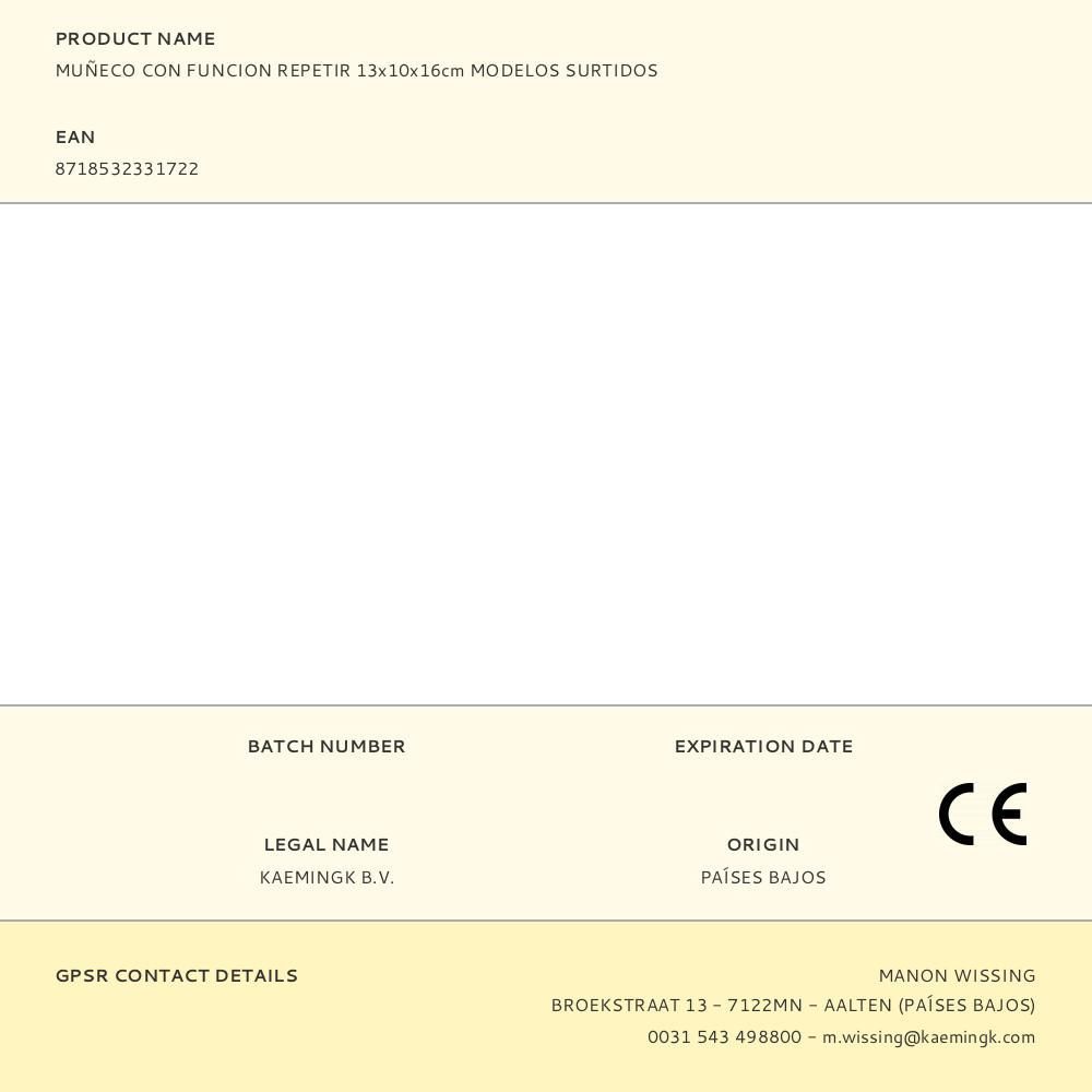 Muñeco Con Funcion Repetir 13X10X16Cm (Ancho/Fondo/Alto) Modelos Surtidos 3Xaaa No Incluidas