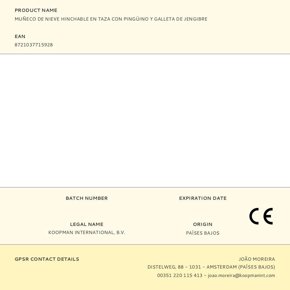 Muñeco De Nieve Hinchable En Taza Con Pingüino Y Galleta De Jengibre, Con 2 X 3 + 2 X 1 Leds, Para Interior Y Exterior Ip44, 220 - 240 V ~50/60 Hz, 8,6 W. Tejido De Poliéster Con Revestimiento Impermeable, Cable De 2 M, Contiene 4 Estacas De Tierra Y 2 Ataduras. Dimensiones 130 X 80 X 183 Cm