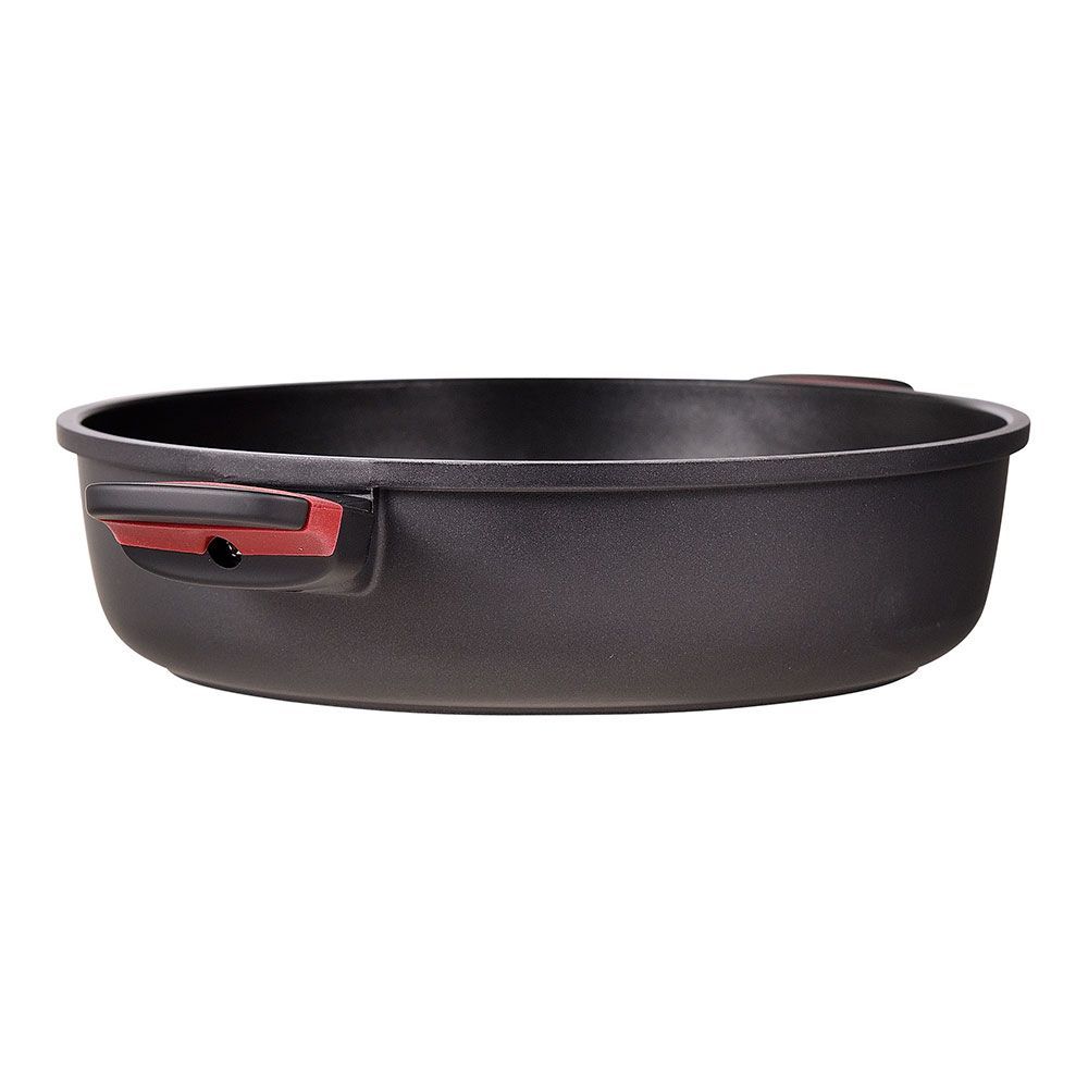 Cacerola Baja Sin Tapa De Aluminio Fundido Para Inducción, Interior Con Revestimiento Ilag Premium. Asas De Baquelita Con Tacto Suave Y Línea De Color Rojo. Ø28 X 7,5 Cm