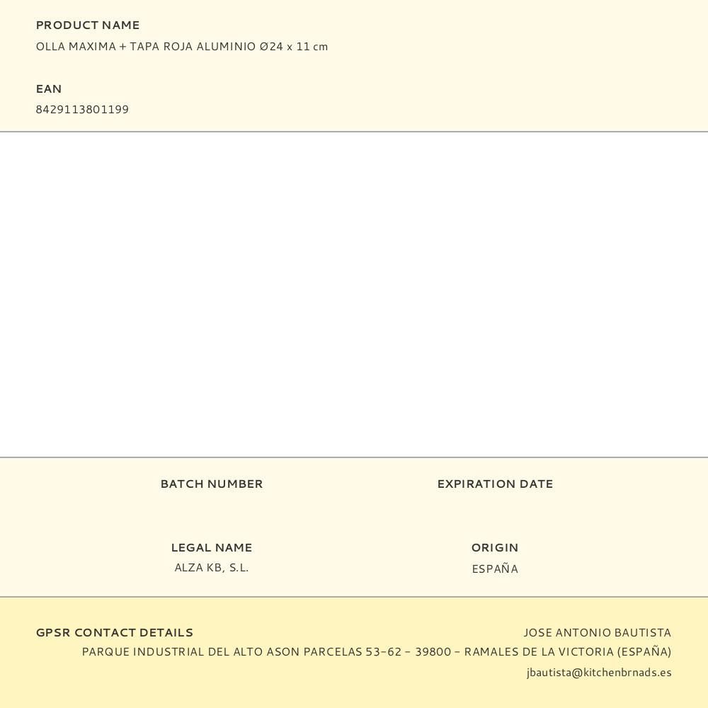 Olla Maxima + Tapa Roja Aluminio Ø24 X 11 Cm