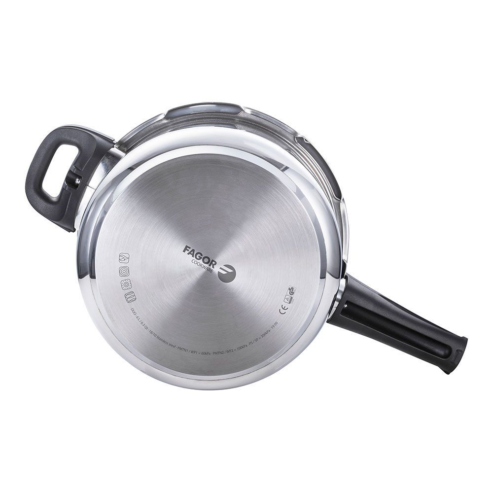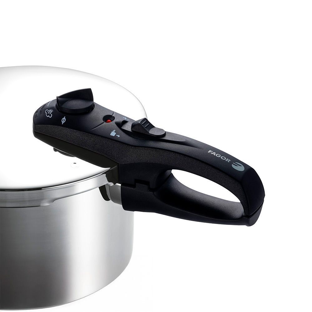 Olla Super Rápida, Duo, 6 L, Inox 18/10, Ø23 X 17 Cm. 2 Niveles De Presión: Rápido 60 Kpa Y Super Rápido 100 Kpa. 5 Sistemas De Seguridad, Incluido Bloqueo Automático De La Tapa. Fondo Termodifusor Impaksteel De Máxima Resistencia Que Optimiza La Conductividad Térmica. Mangos Ergonómicos De Baquelita Termoaislante. Apto Para Todos Los Fuegos