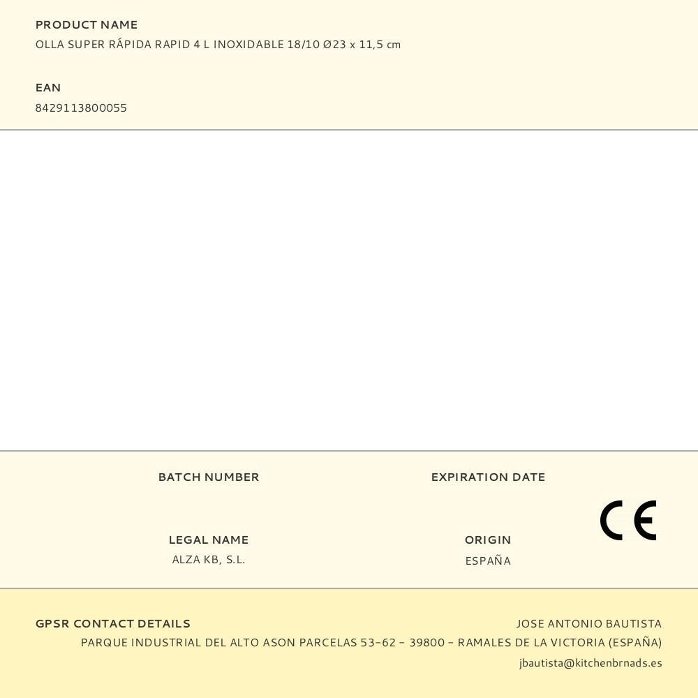 Olla Super Rápida Rapid 4 L Inoxidable 18/10 Ø23 X 11,5Cm