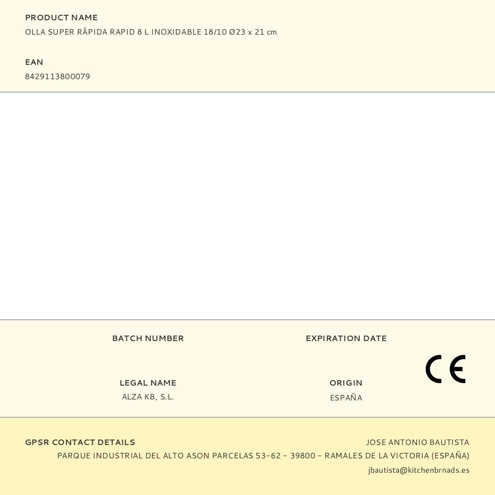 Olla Super Rápida Rapid 8 L Inoxidable 18/10 Ø23 X 21Cm