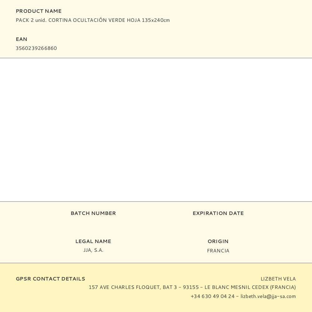 Cortina Ocultación Verde Hoja 135 X 240 Cm, 2 Uds