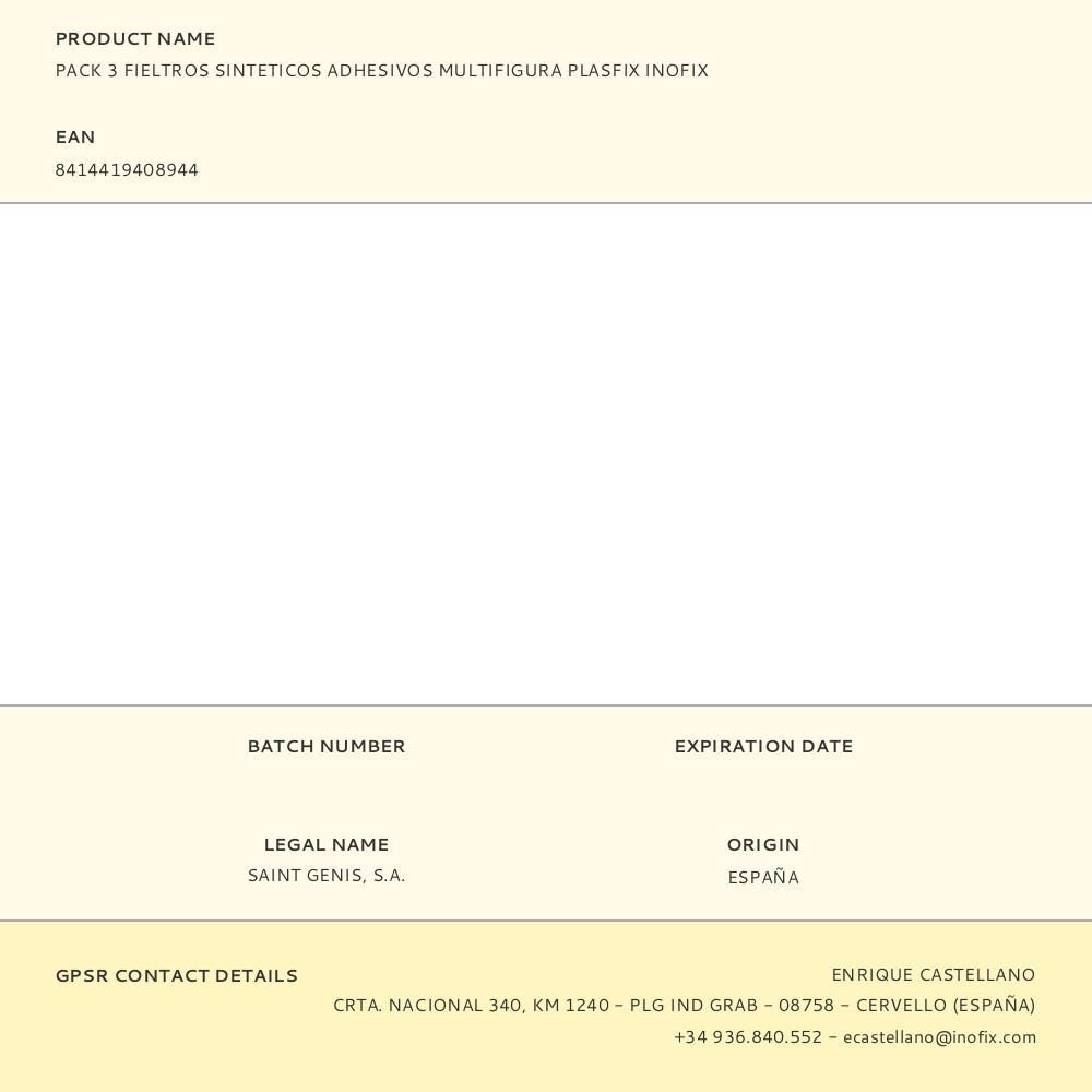 Pack 3 Fieltros Sinteticos Adhesivos Multifigura Plasfix Inofix