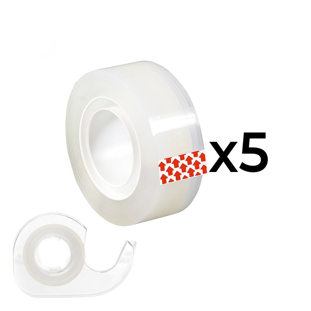 Pack De 5 Rollos Cinta Adhesiva Transparente (15 Mm X 10 M) + 1 Dispensador