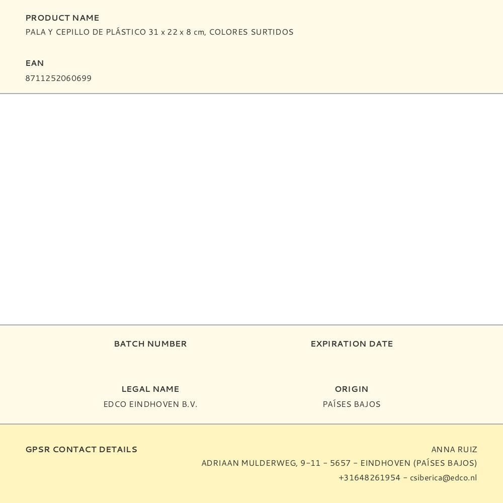 Pala Y Cepillo De Plástico 31 X 22 X 8 Cm, Colores Surtidos