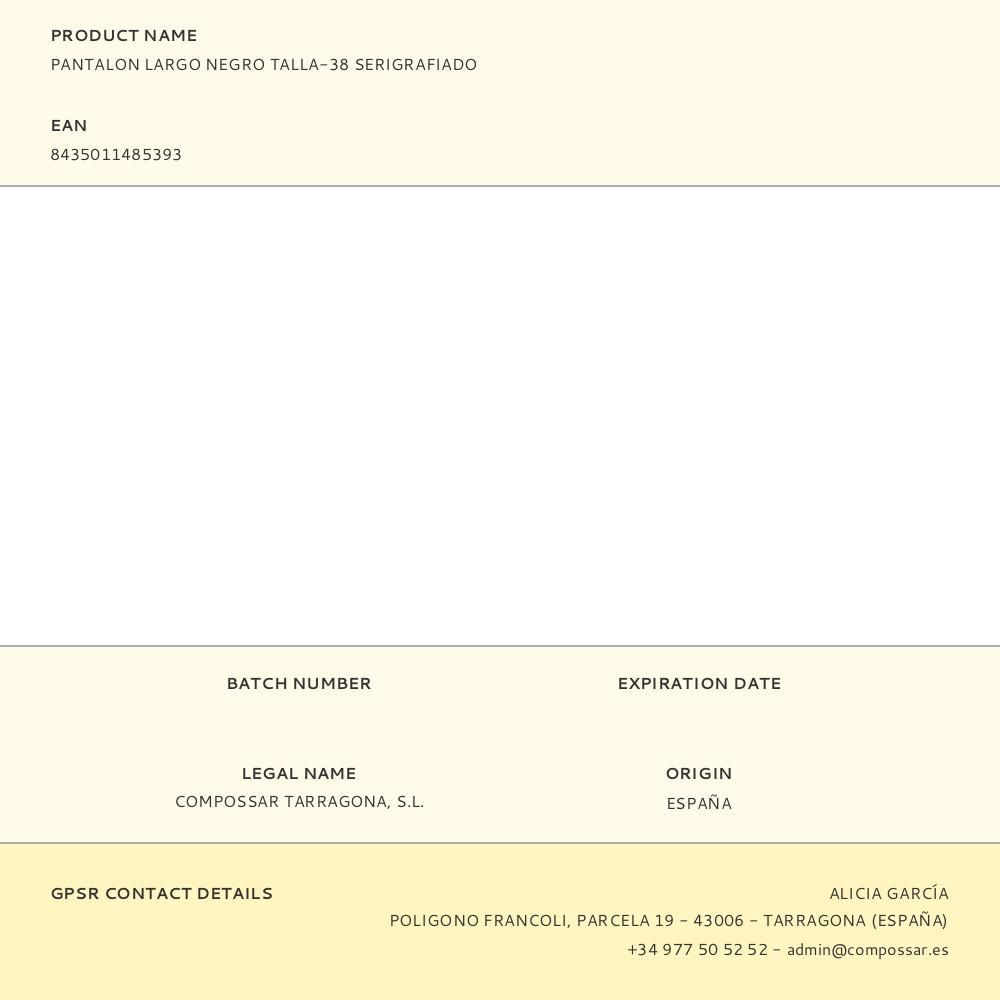 Pantalon Largo Negro Talla-38 Serigrafiado