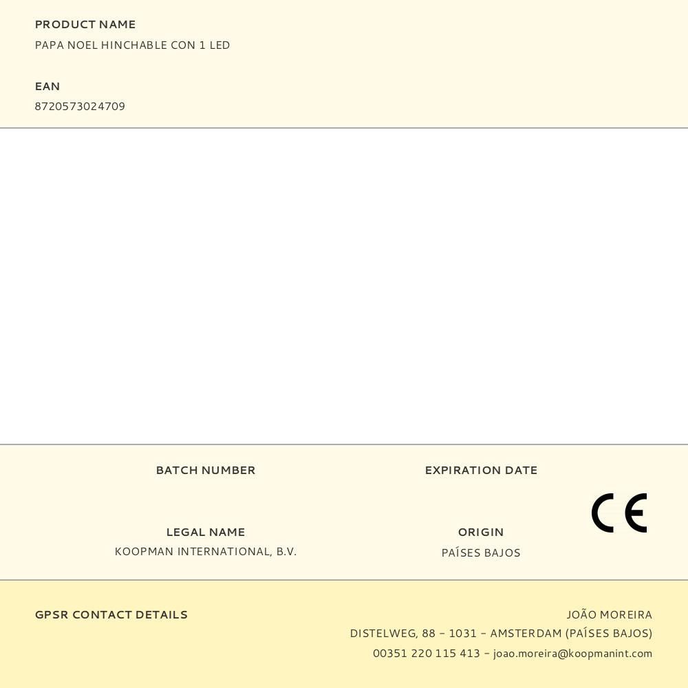 Papa Noel Hinchable Con Led Para Exterior, Tensión De 220 V-240 V~50/60 Hz, Ip44, Medida: 120 X 70 X 190 Cm. 6 Bombillas De Colores. Cuerda 1 M² (Incluida)