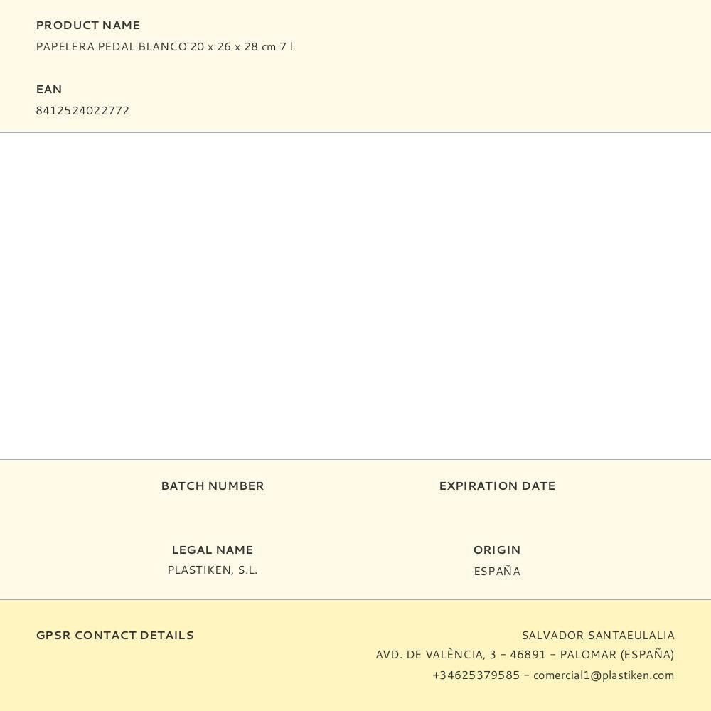 Papelera Pedal Blanco 20 X 26 X 28 Cm 7 L
