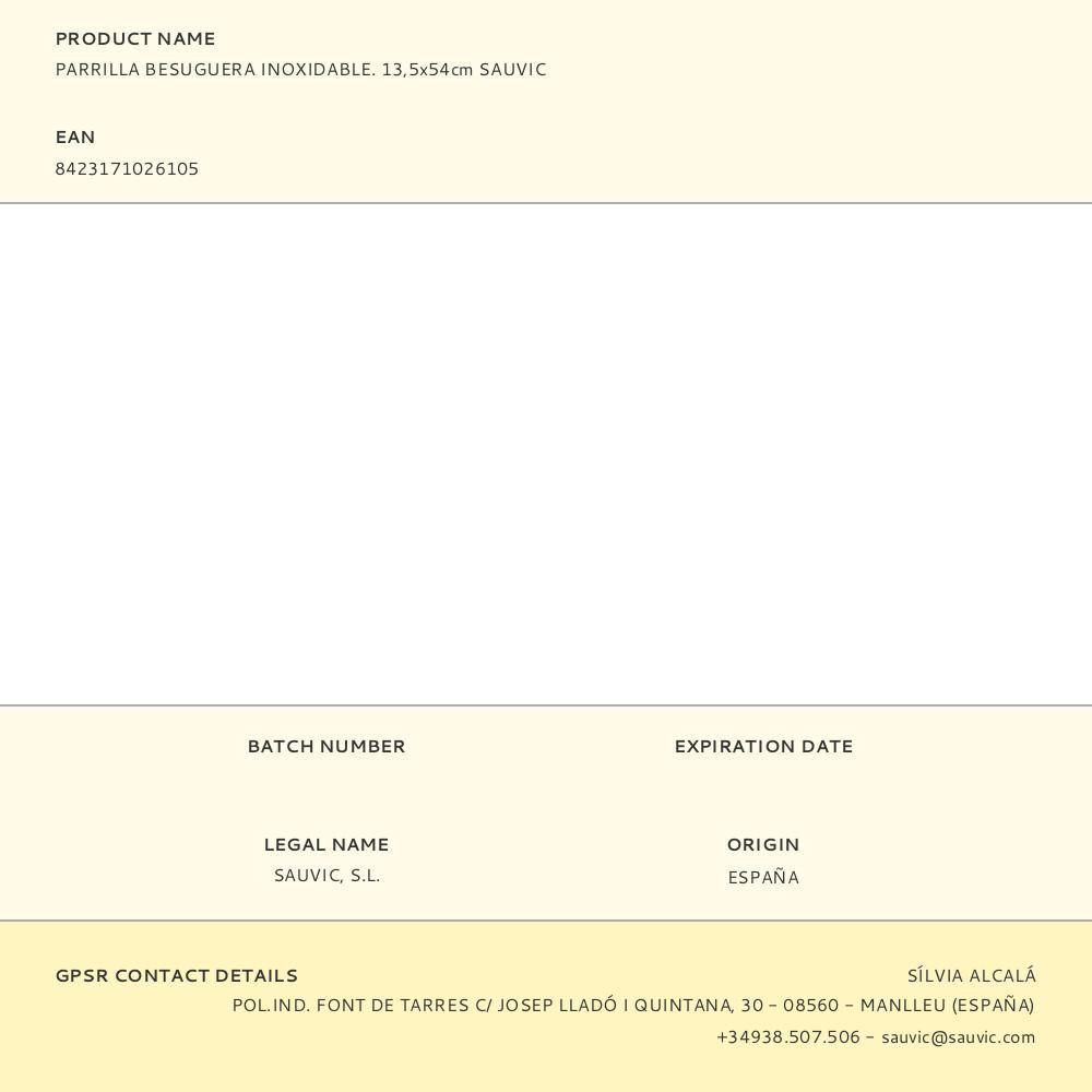 Parrilla Besuguera Inoxidable. 13,5X54Cm Sauvic