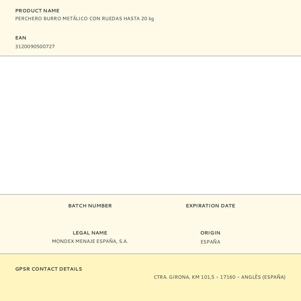Perchero Burro Metálico Con Ruedas Hasta 8 Kg