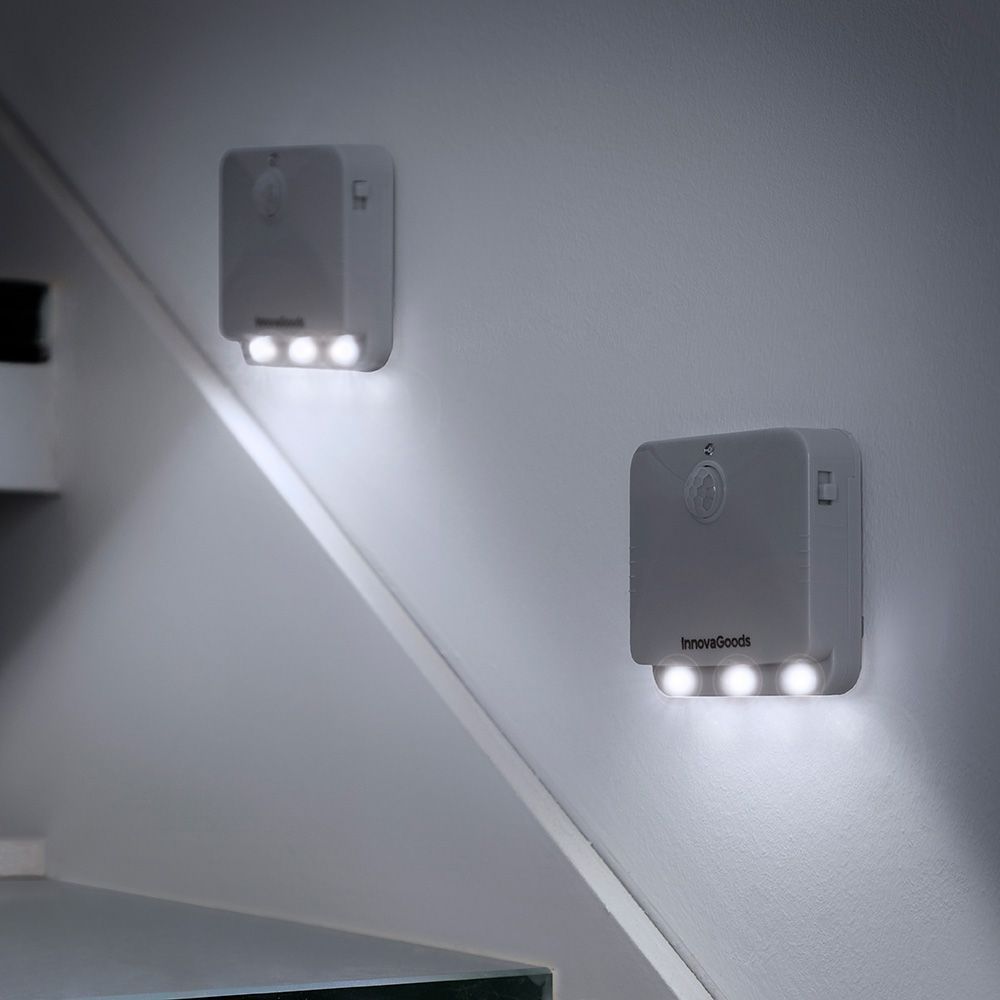 Set De 2 Unidades De Luz Led Con Sensor De Movimiento (Hasta 5M), Ledx3 Funciona Con Pilas 3Xaaa (No Incluidas), Botón On/Off, Apagado Automático 30S, Adhesivo En La Parte Trasea De La Base-Soporte Permite Su Fácil Colocación, Medidas 6,5X1,6X6,2Cm. Innovagoods
