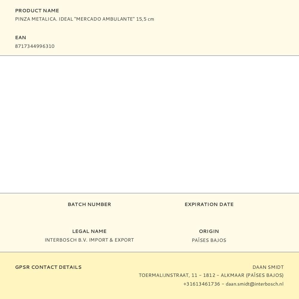 Pinza Metalica. Ideal "Mercado Ambulante" 15,5 Cm