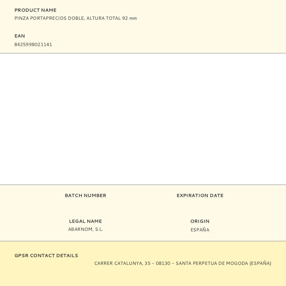 Pinza Portaprecios Doble, Altura Total 92 Mm