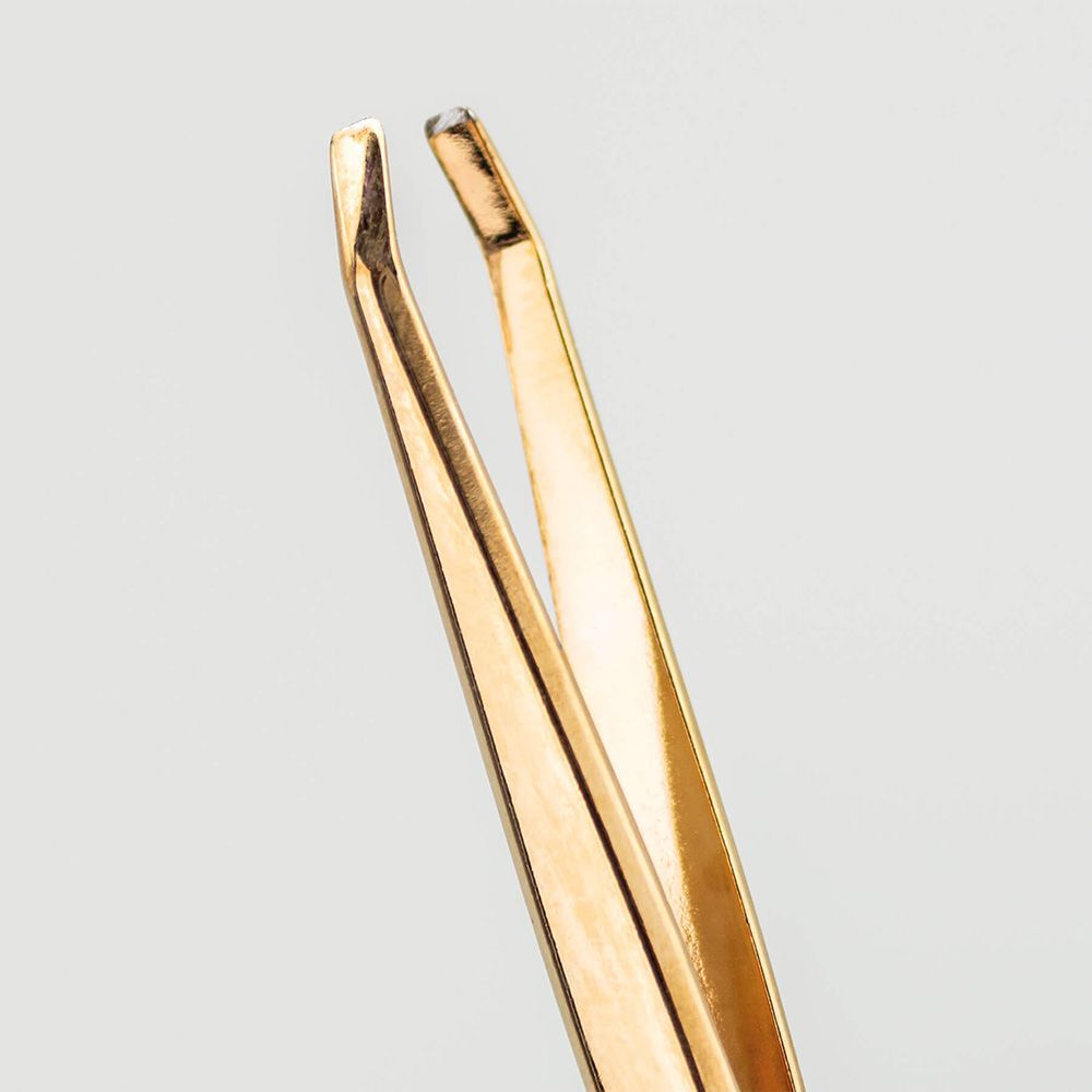 Pinza De Depilar Dorada De Acero Carbono Con Punta Cangrejo. La Punta Cangrejo Permite Una Mejor Visión Del Pelo Para Que Resulte Más Fácil Retirarlo. Medida 9 Cm