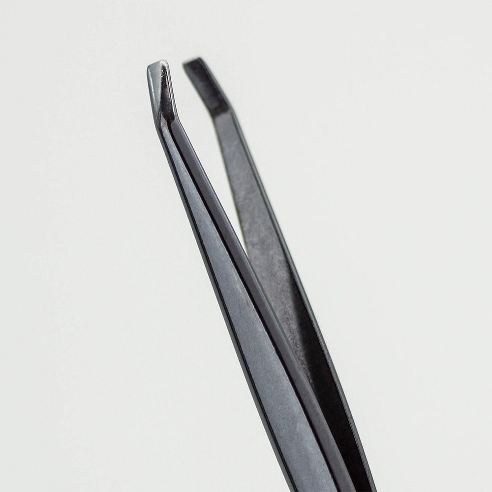 Pinza De Depilar Negra De Acero Carbono Con Punta Cangrejo. La Punta Cangrejo Permite Una Mejor Visión Del Pelo Para Que Resulte Más Fácil Retirarlo. Medida 9 Cm