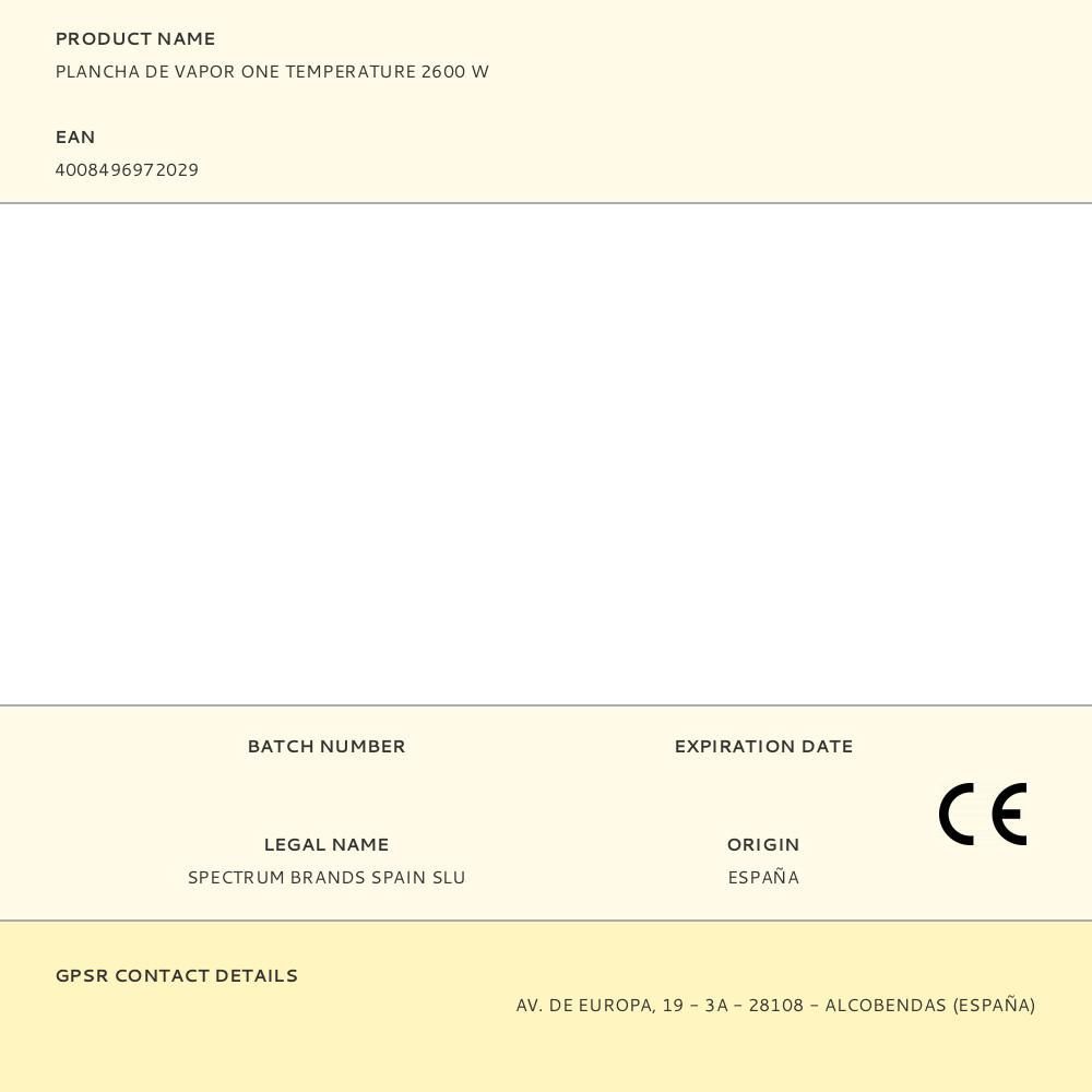 Plancha De Vapor One Temperature 2600 W