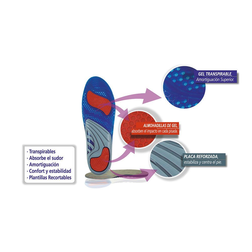 Plantilla Para Calzado Plus Silicona T: 42-46. Transpirables. Absorbe El Sudor, Amortiguación, Confort Y Estabilidad. Multitalla Recortable, 42-46