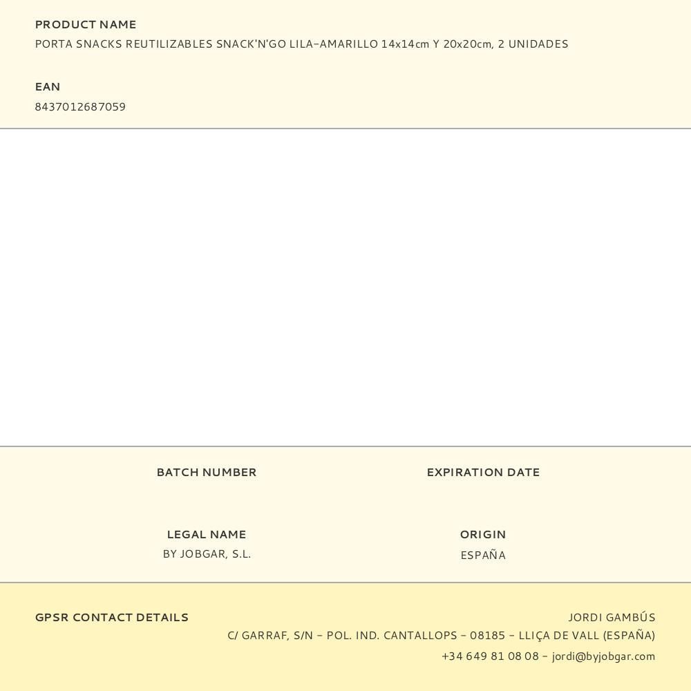 Porta Snacks Reutilizables Snack'N'Go Lila - Amarillo 14 X 14 Cm Y 20 X 20 Cm 2 Uds