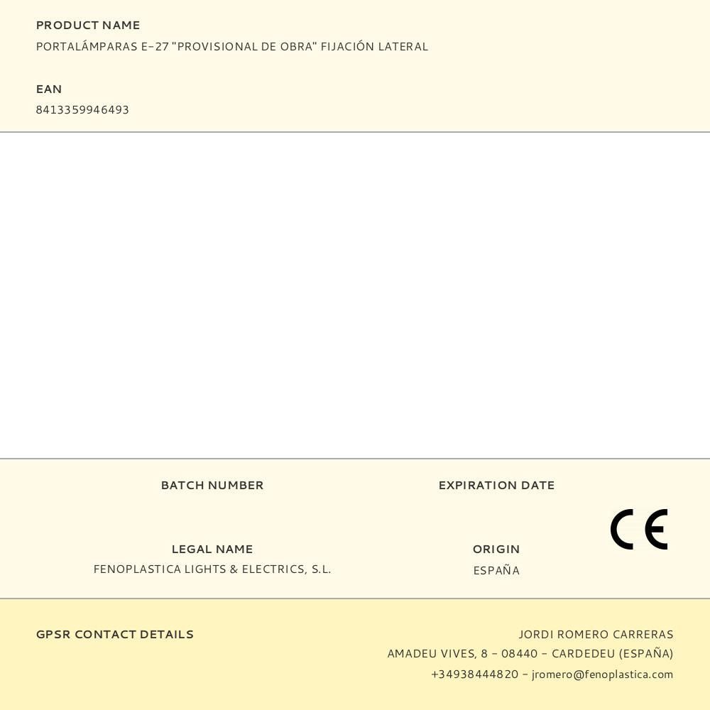 Portalámparas E-27 "Provisional De Obra" Fijación Lateral
