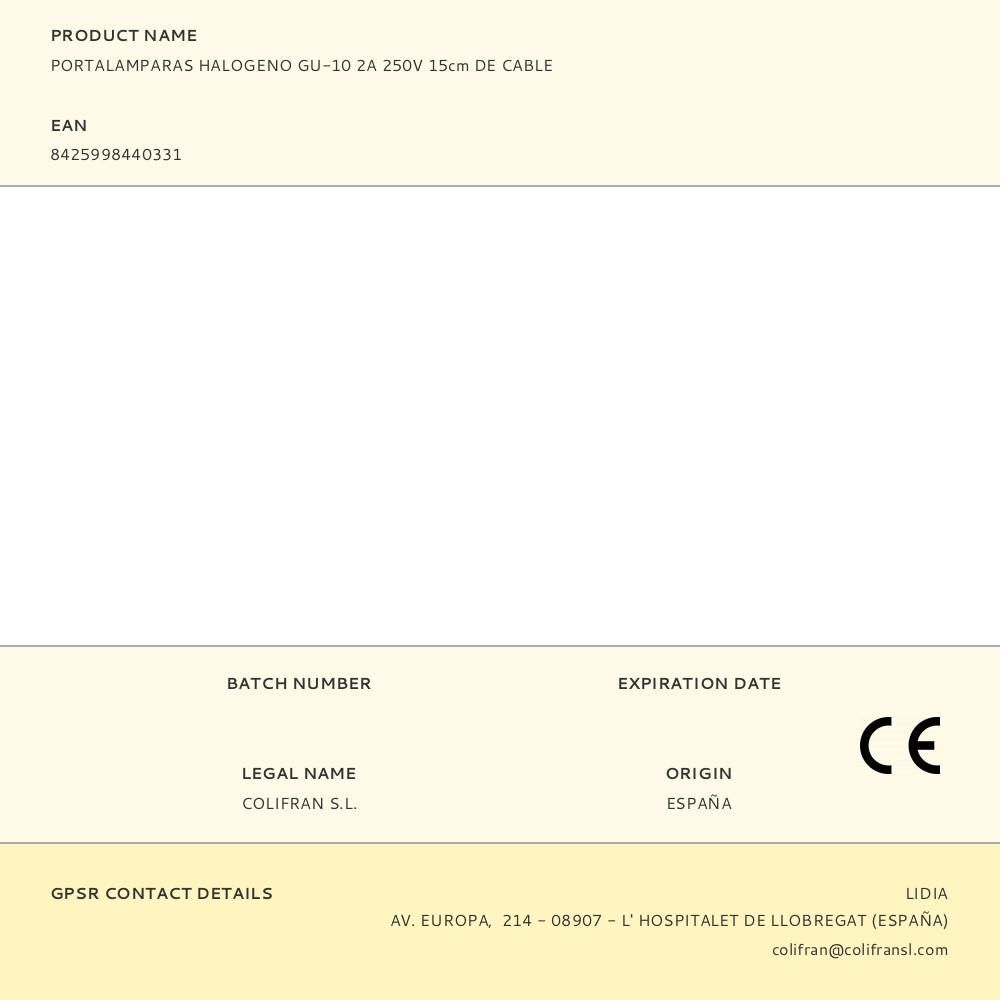 Portalamparas Halogeno Gu-10 2A 250V 15Cm De Cable
