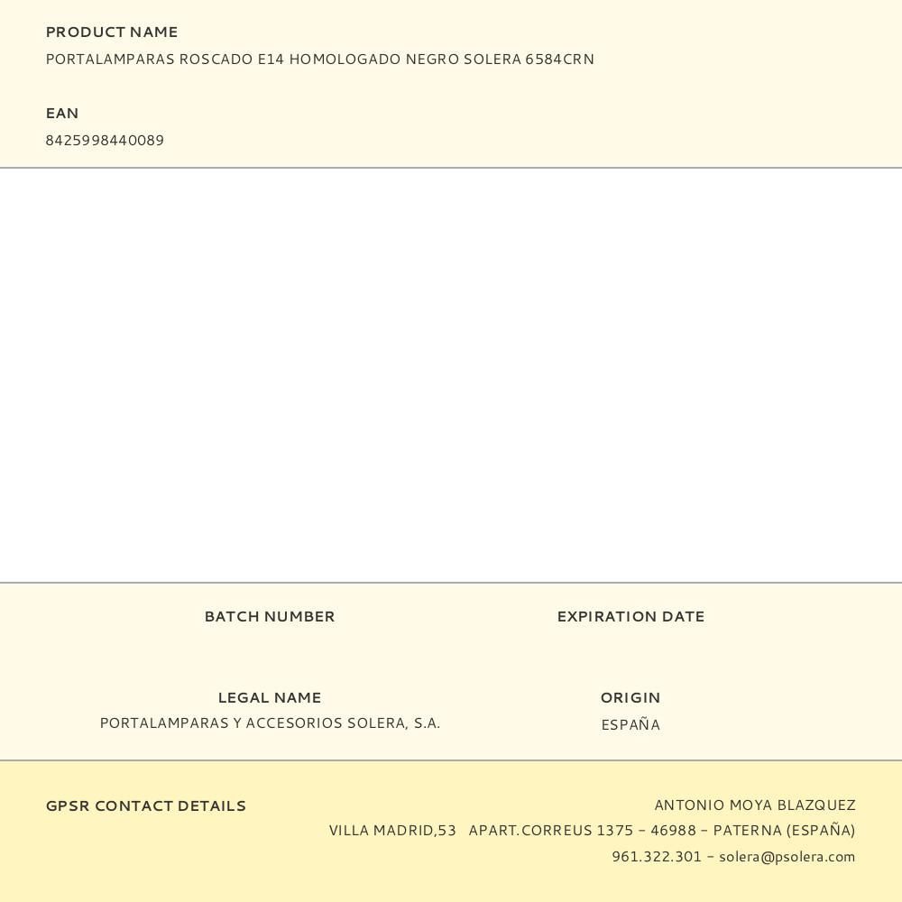 Portalamparas Roscado E14 Homologado Negro Solera 6584Crn