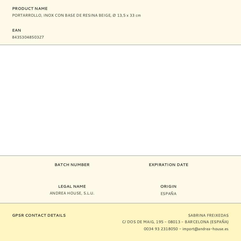 Portarrollo Inox Con Base De Resina Beige Ø13,5 X 33 Cm