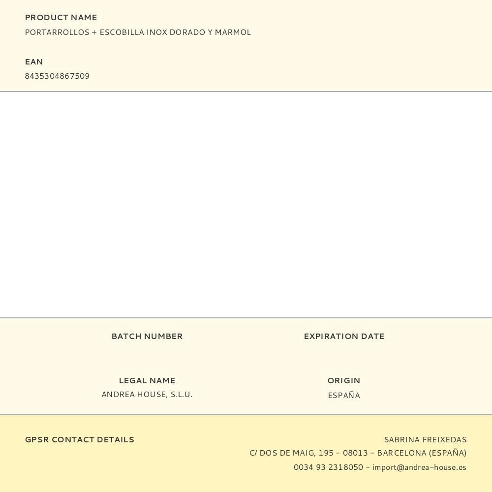 Portarrollos + Escobilla Inox Dorado Y Marmol