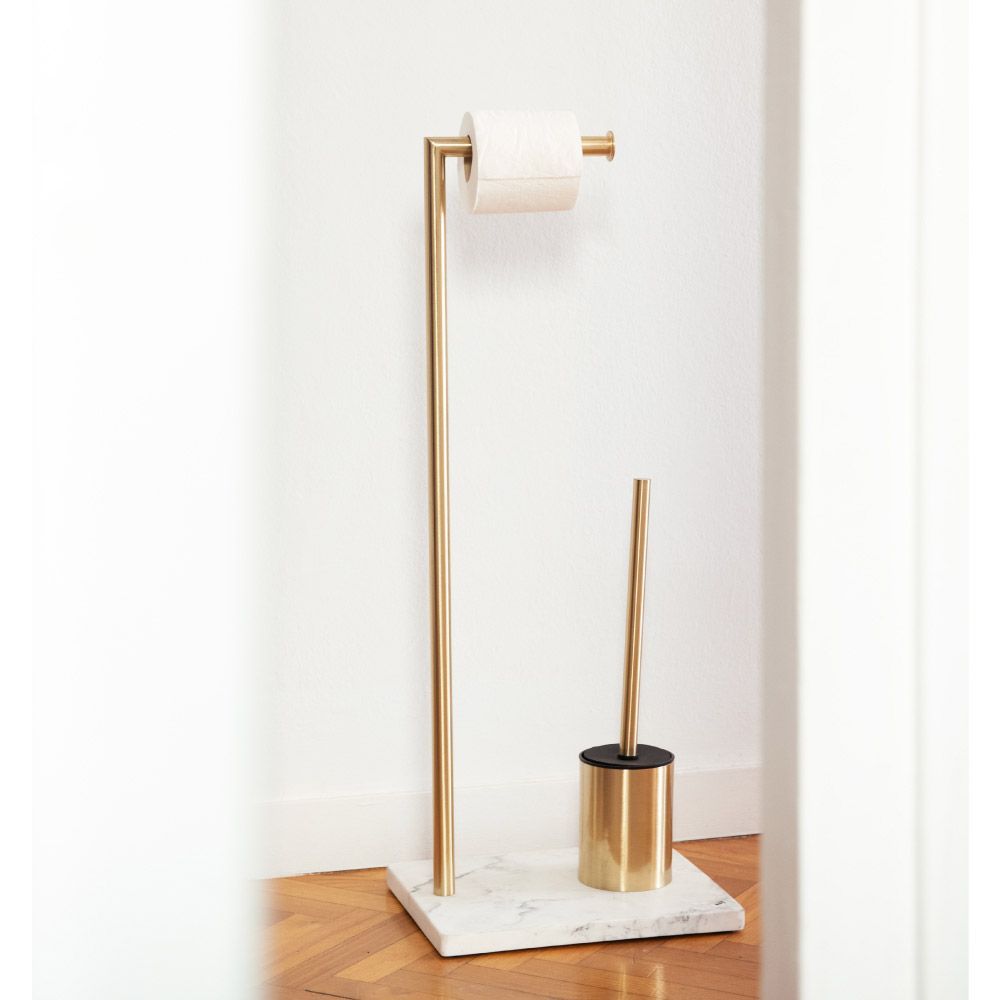 Portarrollos Con Escobilla Dorado Con Base De Mármol Clásico