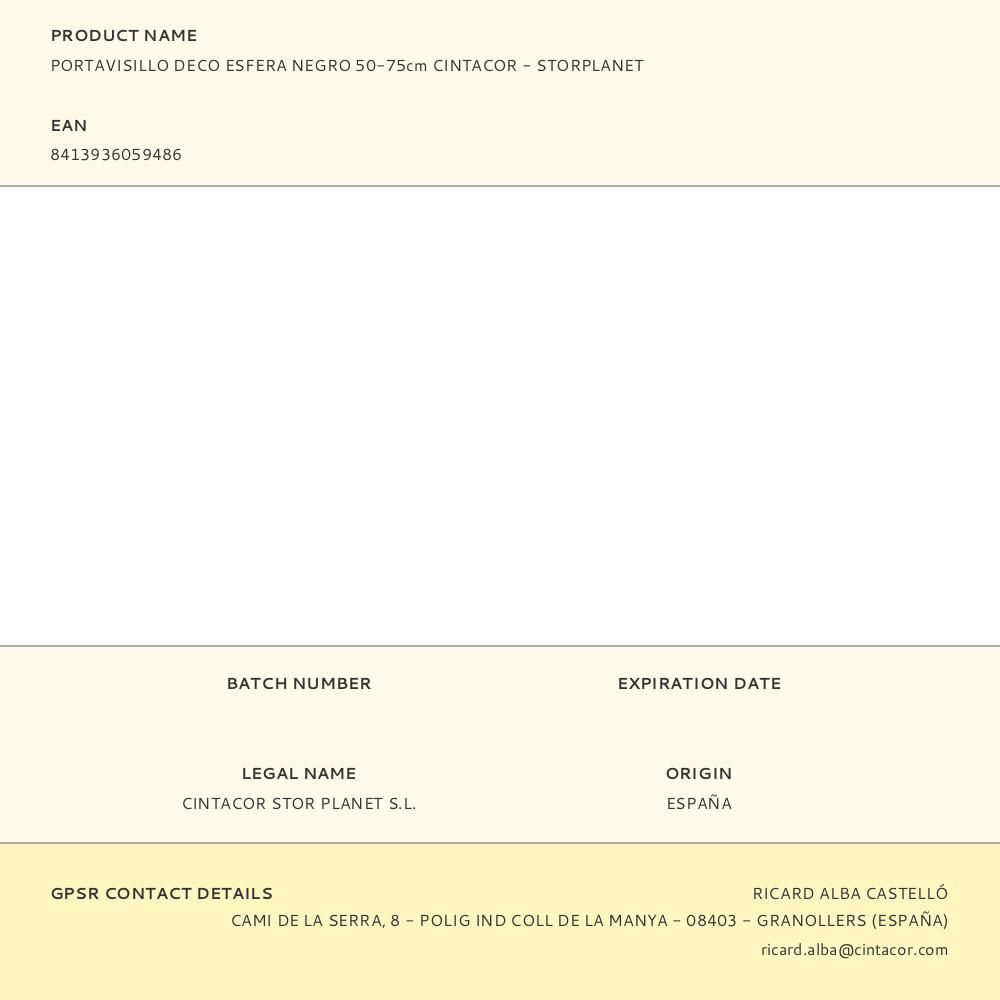 Portavisillo Extensible Deco Esfera Negro, 50 - 75 Cm. Incluye Tornillos
