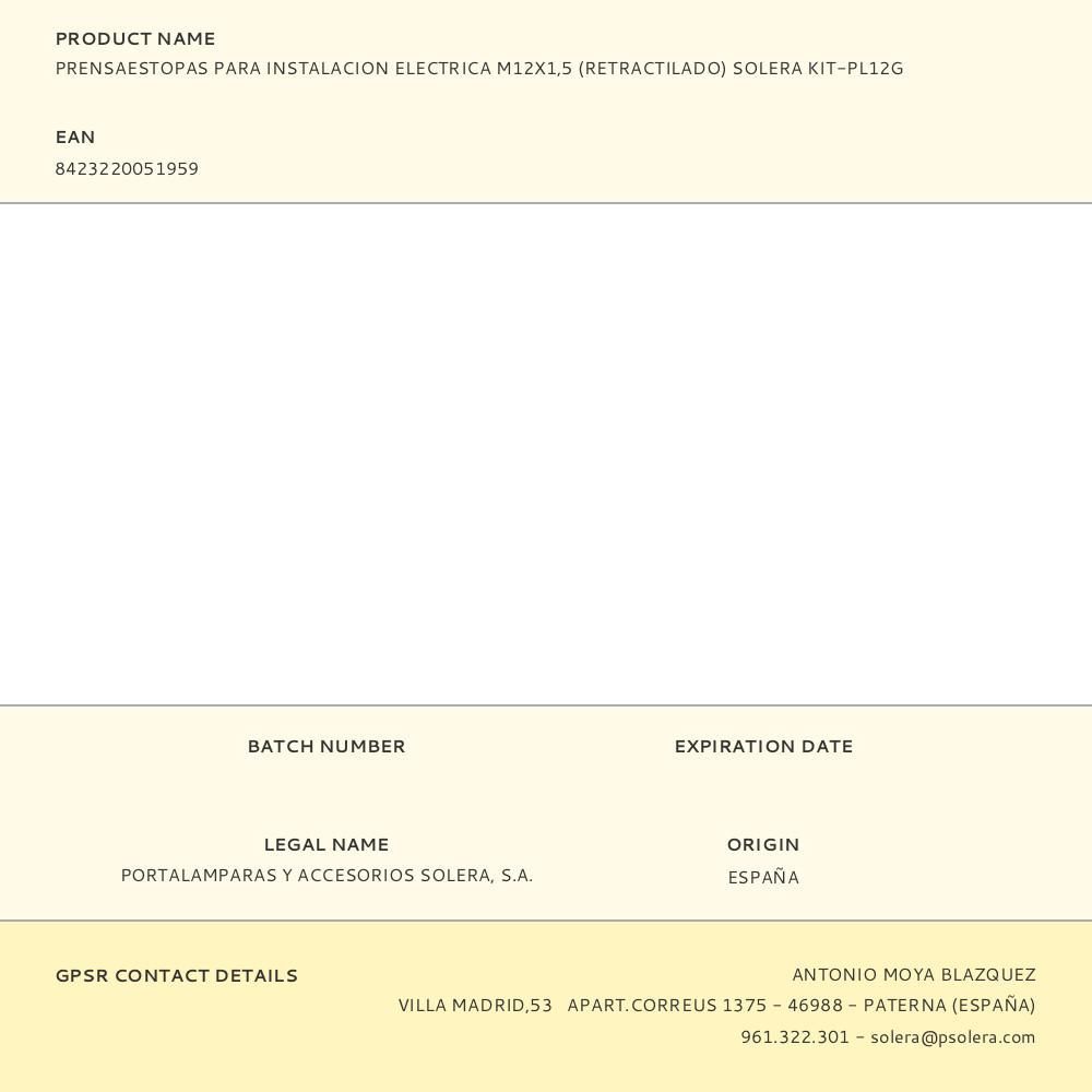 Prensaestopas Para Instalacion Electrica M12X1,5 (Retractilado) Solera Kit-Pl12G
