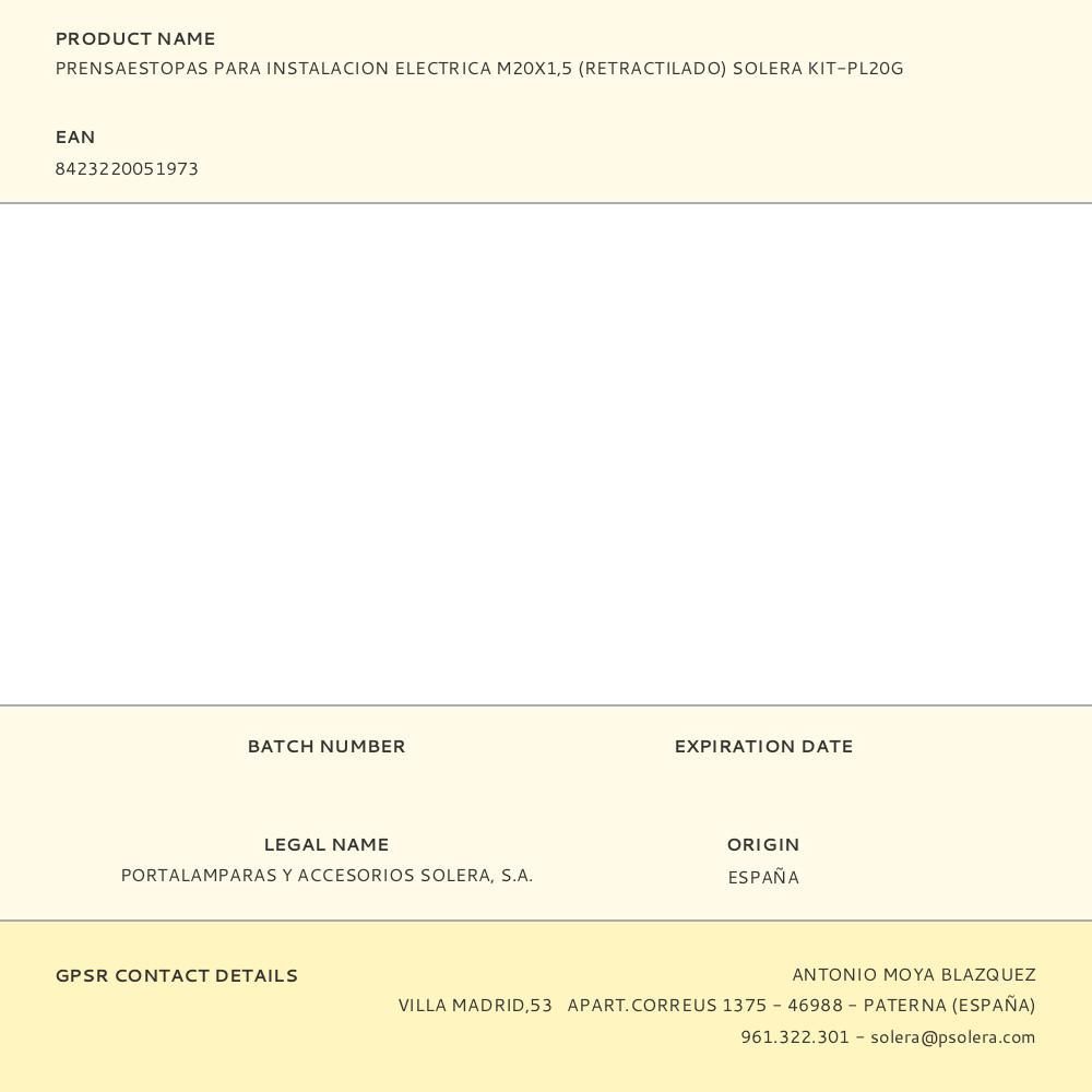 Prensaestopas Para Instalacion Electrica M20X1,5 (Retractilado) Solera Kit-Pl20G