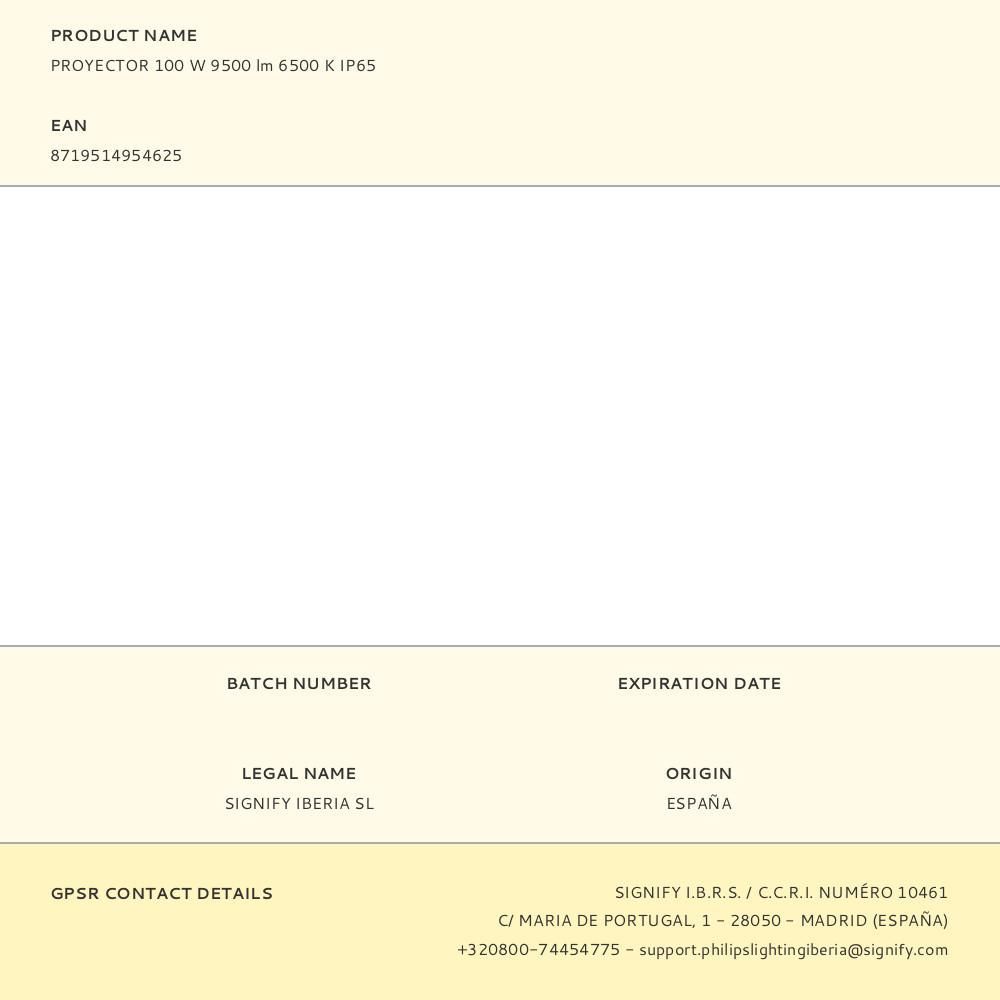 Proyector 100W 9500Lm 6500K Ip65 Philips. Proyector 100W 6500K Irc 80, 9500Lm, 35000 Horas Ip65, 911401864584 Philips Projectline