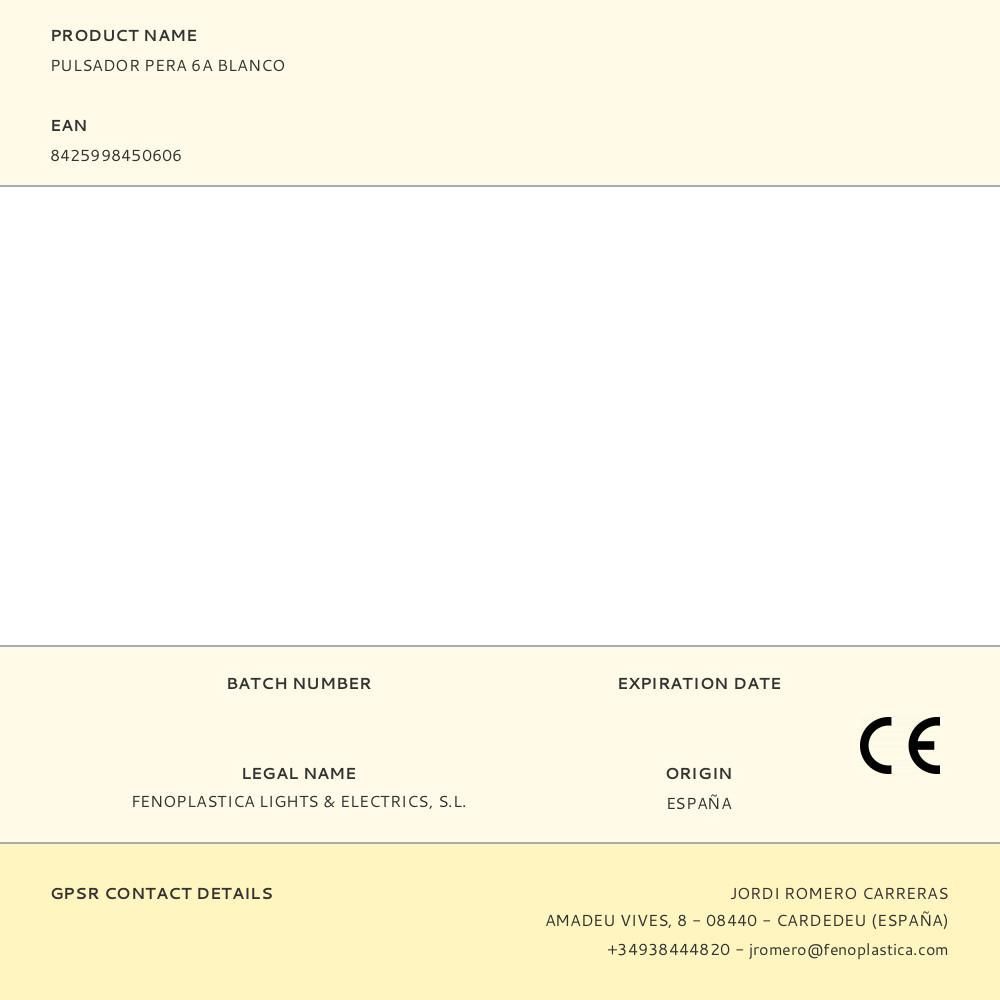 Pulsador Pera 6A Blanco Medidas: 58X25,6Mm