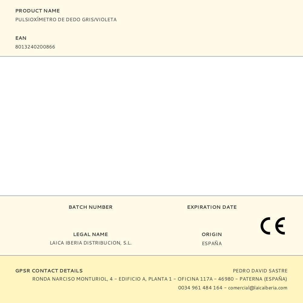 Pulsioxímetro De Dedo Mod. Ea1007 Gris/Violeta Laica. Es Un Dispositivo No Invasivo Que Permite Medir La Saturación De Oxigeno Arterial (Spo2) Y La Frecuencia Cardíaca (Frecuencia Del Pulso). La Saturación De Oxígeno Indica El Porcentaje De Hemoglobina Unida Al Oxigeno En La Sangre Arterial. La Saturación Se Mide Con Un Oxímetro De Pulso, Un Instrumento De Mano Que Se Aplica Sin Dolor A Un Dedo. Atencion: Los Valores Que Indique Han De Ser Siempre Comentados Con Su Medico. Es Un Dispositivo Medico Ce. Lea Atentamente Las Advertencias O Instrucciones De Uso. El Kit Incluye, A Parte Del Pulsiometro, 1 Correa Y 2Xaaa Para Su Funcionamiento. Intervalo De Medición Spo2: 36%-99%. Intervalo De Medición De Pulso: 30 Bpm-250Bpm. Pantalla Led 2.6X1.9Cm.