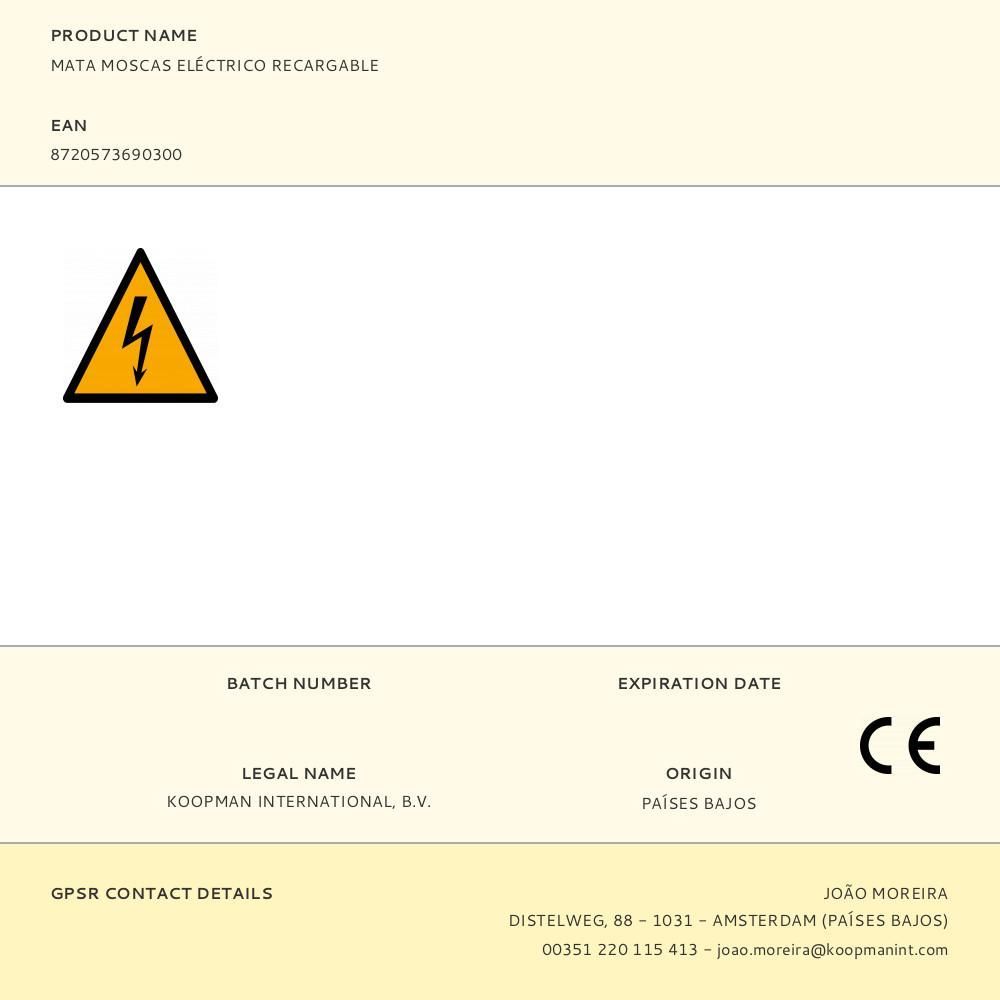 Raqueta Mata Moscas, Mosquitos, Etc Por Contacto. Recargable Con Cable Usb (Incluído), Funciona Con Baterías Recargables Incluídas (1 X 3,7 V 18650 Lithium-Ion, 1200Mah). Características Apto Sólo Para Ser Utilizado Por Personas Adultas, Pues Produce Una Pequeña Descarga Eléctrica. Medidas: 48 X 21 Cm